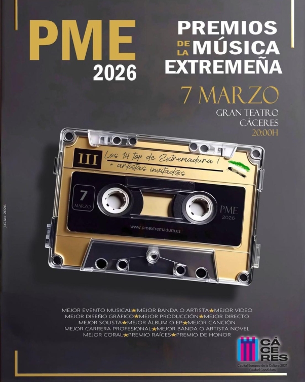 El pasado sábado 7 de marzo se entregaron los Premios de la Música de Extremadura en el Gran Teatro de Cáceres. Donde se premiaron a 14 artistas o propuestas musicales o artísticas de la región.